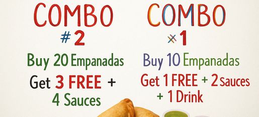 Our empanadas are crafted with **premium, all-natural ingredients**, no nitrates, no preservatives,, no GMO, or shortcuts. From **Grade A farm-fresh eggs** and **tender chicken** to **slow-cooked premium beef stew** made with **imported organic spices**, every bite delivers authentic flavor you won’t find anywhere else.